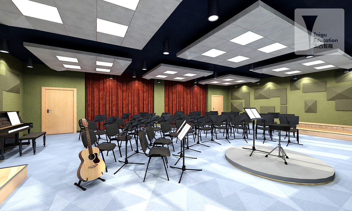 音樂(lè)教室是用于音樂(lè)教學(xué)和興趣小組的開(kāi)展,是師生發(fā)現(xiàn)美、欣賞美、創(chuàng)造美得殿堂。