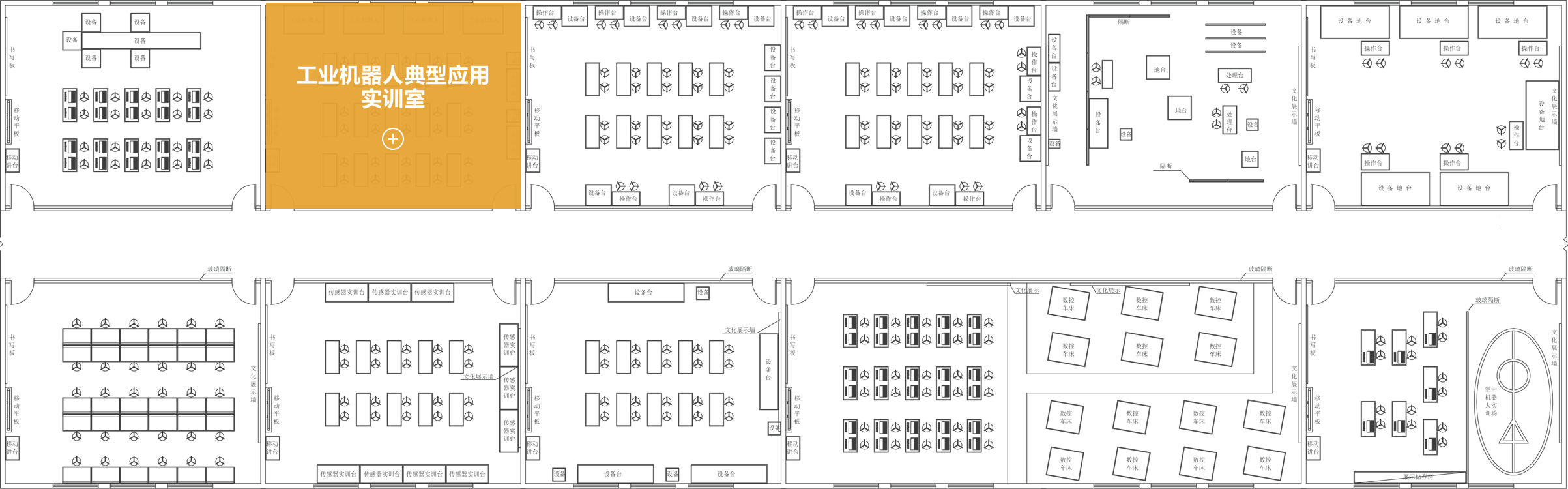 實(shí)訓(xùn)室主要面向工業(yè)機(jī)器人技術(shù)、模具設(shè)計(jì)與制造、機(jī)電等機(jī)械制造專(zhuān)業(yè)適應(yīng)制造業(yè)轉(zhuǎn)型、專(zhuān)業(yè)建設(shè)改革升級(jí),主要進(jìn)行基于工業(yè)機(jī)器人各類(lèi)工藝應(yīng)用性實(shí)訓(xùn)。